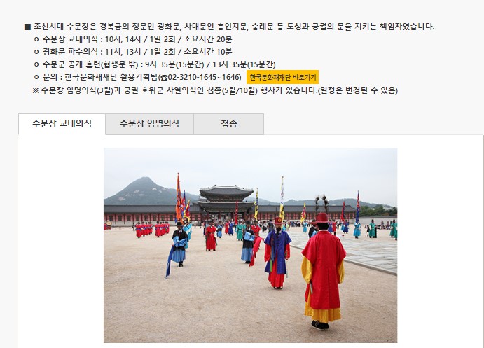 아이들에게 볼거리를 선사하고 싶으시면 수문장 교대식도 챙겨보세요.