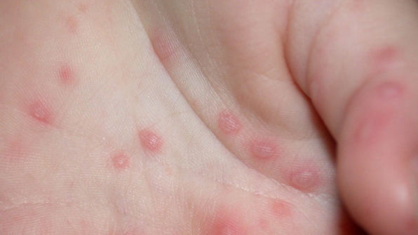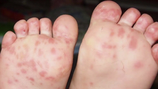 수족구병의 피부 발진은 주로 3-7 mm의 크기로 손등과 발등에 생기지만 손바닥, 발바닥, 손발가락 사이에도 일반적으로 생깁니다. 대다수는 증상이 없지만 누르면 조금 아프거나, 가려움증이 부수되는 경우도 있으며 발보다는 손에서 더 많이 보입니다.